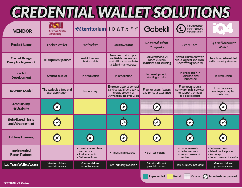 Enter Education Design Lab with CredCompare—a handy comparison tool that gives stakeholders a clearer picture of available options. And if you’re more of a visual learner, their Digital Credentials Wallet PDF offers a helpful breakdown of digital wallet solutions in an easy-to-digest format.